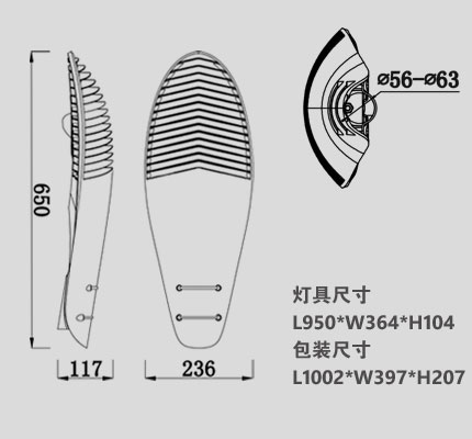 | 燈具尺寸(mm) | L650*W236*H117 |