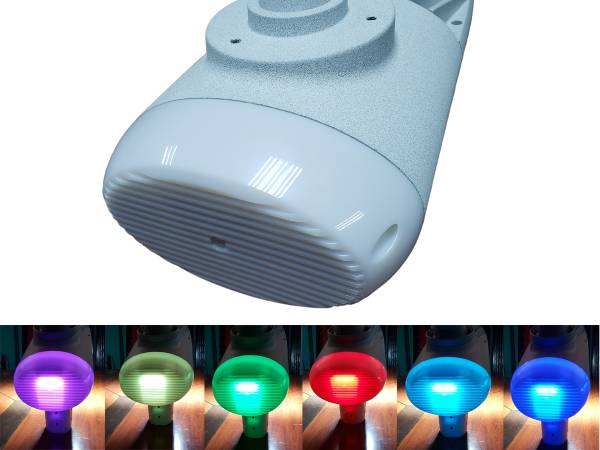 第二代一體化太陽能路燈尾部采用RGB彩燈設(shè)計,六種顏色輪流不停閃爍,可調(diào)節(jié)閃爍快慢,也可關(guān)閉,給黑夜道路添加了不一樣的色彩