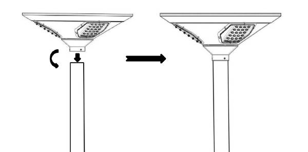 將燈體垂直插入燈桿上,擰緊套筒上的4顆螺絲即可