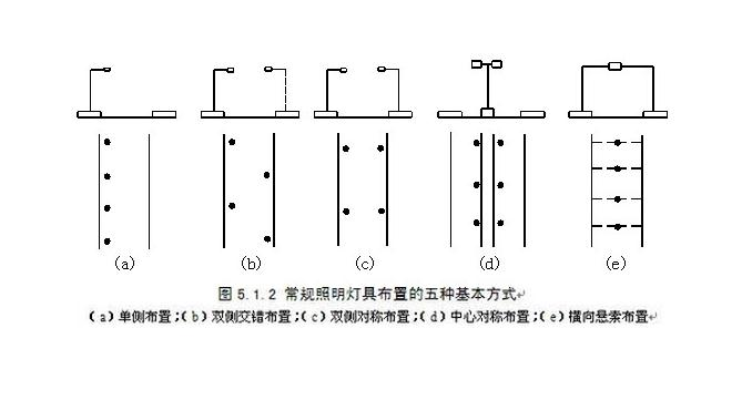 雙側(cè)交錯(cuò)布燈:燈桿間距(S)≤3.5倍安裝高度(H)