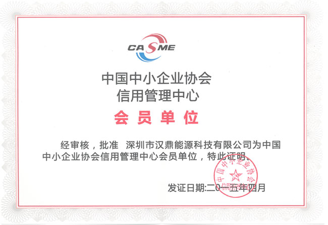 圖一:漢鼎成為中國中小企業(yè)協(xié)會信用管理中心“會員單位”