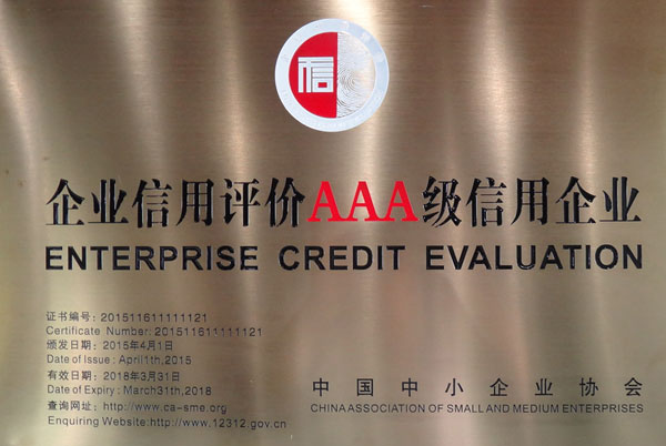圖三:“企業(yè)信用評價(jià)AAA級信用企業(yè)”獎牌