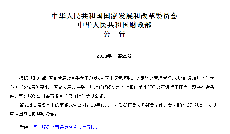 2013年5月13日,國家發(fā)展改革委、財政部公布了節(jié)能服務(wù)公司名單,漢鼎能源是符合條件的照明節(jié)能改造EMC合同能源管理公司,可以申請國家財政獎勵資金。